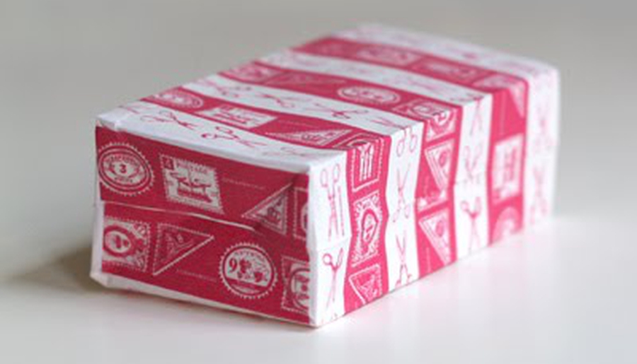 კონვერტს ერთი მხრიდან მოაჭერით ბოლო ნაწილი.
