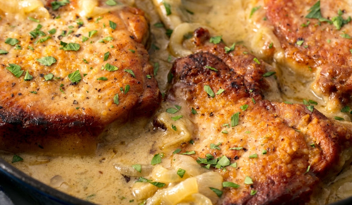 შეამცირეთ ტემპერატურა, დაასხით დარჩენილი ზეთი და დაუმატეთ თხლად დაჭრილი ხახვი. შეაზავეთ მარილითა და პილპილით და თუშეთ დაბალ ტემპერატურაზე ძალიან დარბილებამდე, დაახლოებით 15–20 წუთით. დაუმატეთ კარაქი, დაელოდეთ გადნეს და მოაყარეთ გადანახული 2 ს/კ ფქვილის ნაზავი. თუშეთ დაახლოებით 1 წუთით. შეურიეთ ქათმის ბულიონი და არაჟანი. აადუღეთ. ადუღეთ 5 წუთით სოუსის შესქელებამდე.
